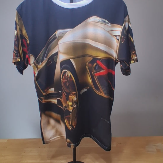 Gold Car Tee Shirt, Gold Lambo Graphic Shirt, Polyester