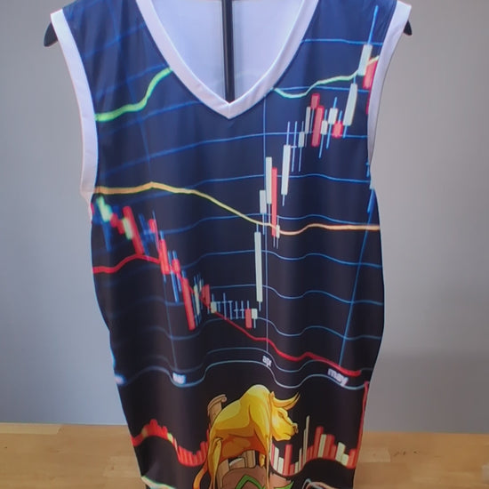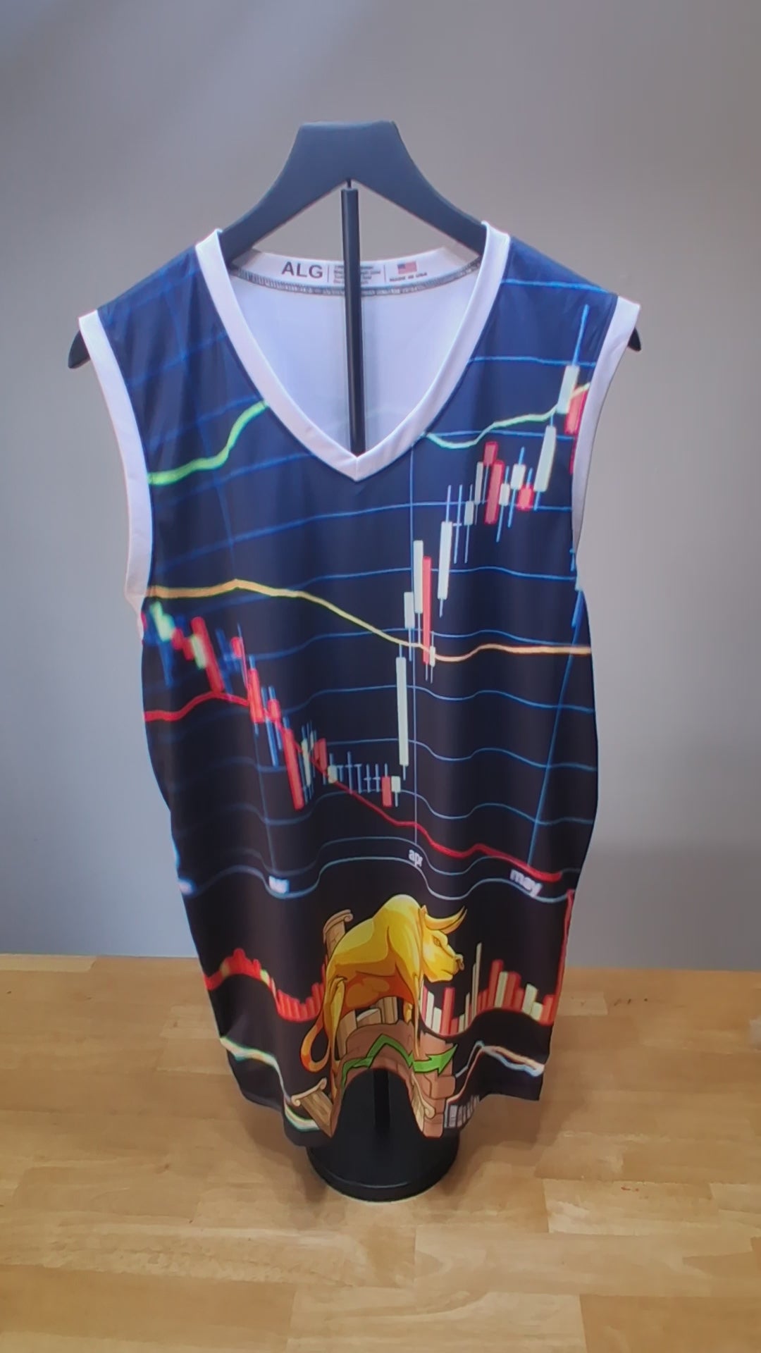 Introducing the Stock Market Basketball Jersey. Made with 100% polyester, this jersey features an all over print of the stock market. Stay cool and dry on the court with moisture wicking technology and stay fresh with odor resistance. Assembled in the USA, this jersey is a slam dunk for any basketball fan!
